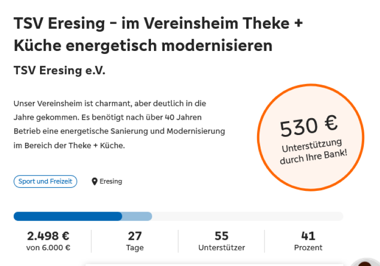27.09. bis 18.12. Crowdfunding-Projekt Theke + Küche im Vereinsheim energetisch modernisieren