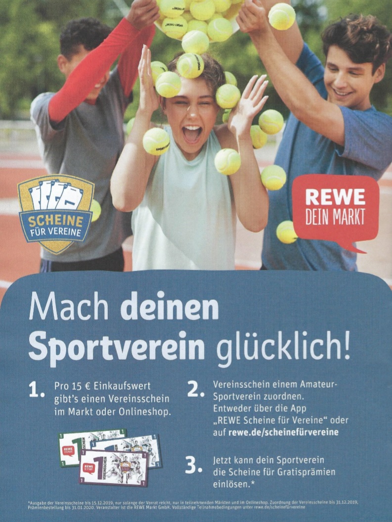 ... von REWE läuft wieder vom 01.05. bis 11.06. Anja Lempert organisiert die Aktion. Bitte unterstützt den TSV mit fleissig gesammelten Vereinsscheinen, die wir in Sportausrüstungs-Prämien umwandeln können. Danke.