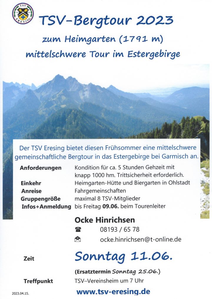 ... Ocke Hinrichsen hat für den 11.06. eine mittelschwere Bergtour zum Heimgarten geplant - mittlerweile seine 16.