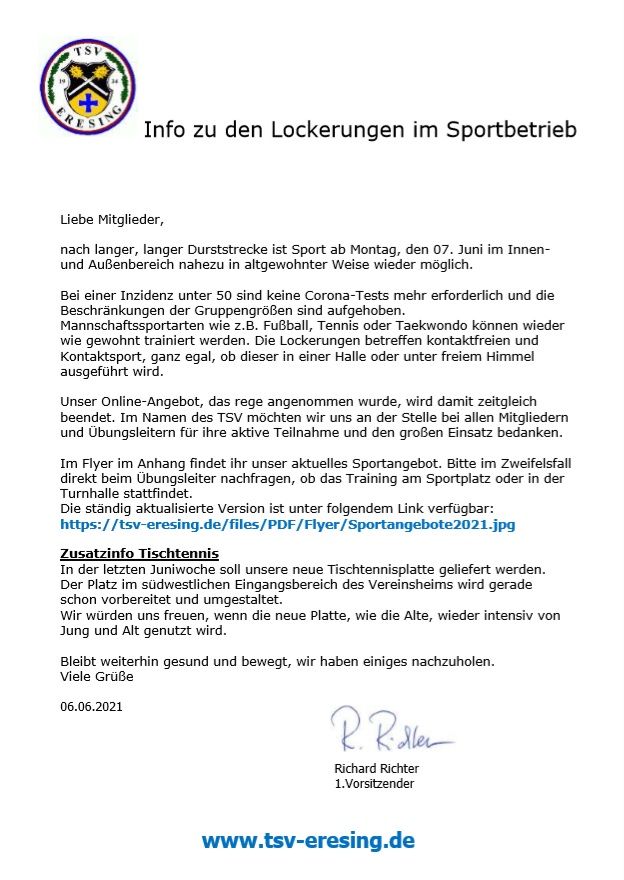 Die Mitgliederverwaltung ist jetzt unter (mitglieder@tsv-eresing.de) verfügbar!