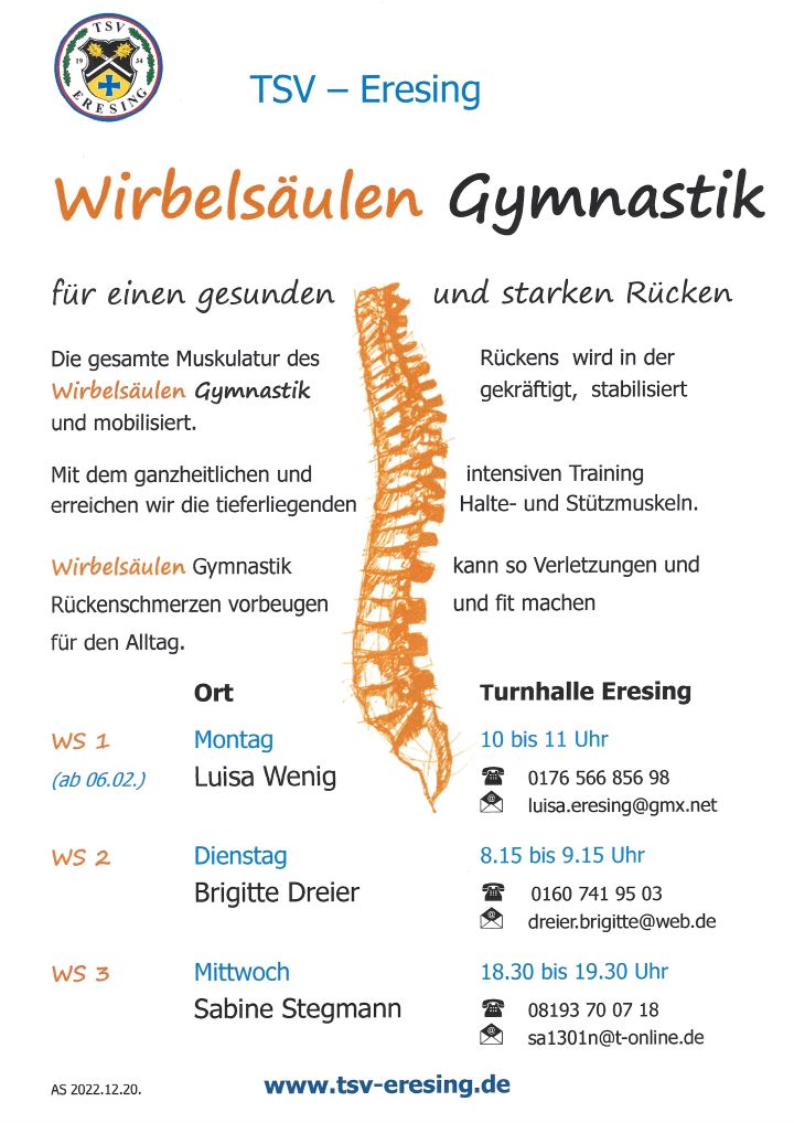 Wirbelsäulen-Gymnastik nun in 2 Gruppen....
